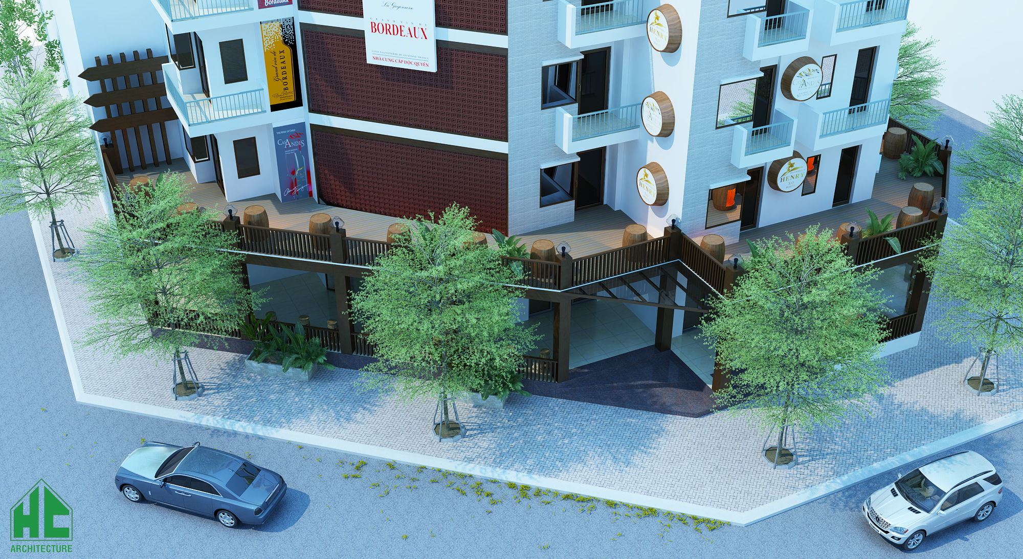 • Mặt tiền được phối cảnh 3D, ngoại thất phối cảnh 3D