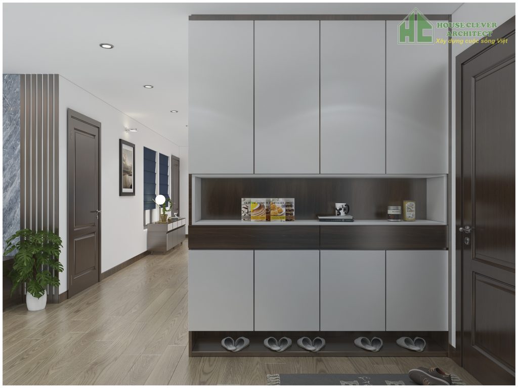 Sử dụng vật việt gỗ công nghiệp MDF an cường phủ melamine trắng bóng pha màu tông nâu óc chó, tạo không gian sang trọng, lịch sự của xu hướng trẻ hiện nay.